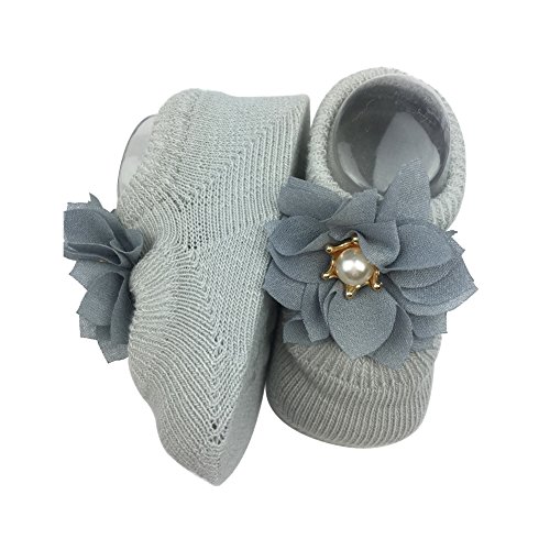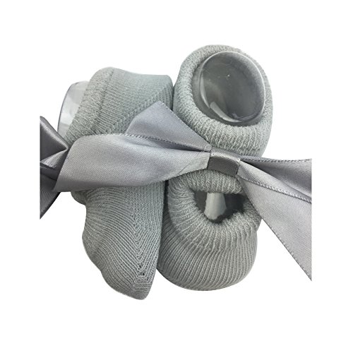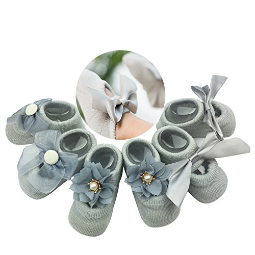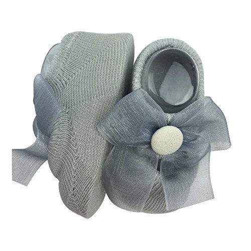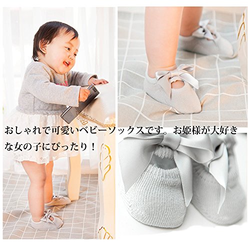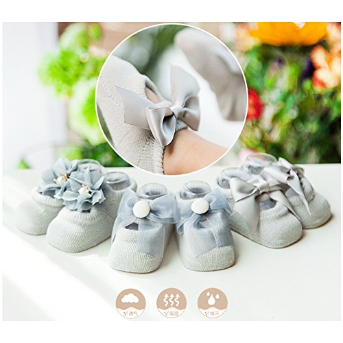 (サンディー テイ)Sandy ting 「3足セット」春夏秋 新生児ソックス キッズ 0-3歳 女児 ベビー お姫様 リボン付 蝶結び 子供赤ちゃん靴下 滑り止め付き 薄手 出産お祝い 誕生日 (S, グレー)