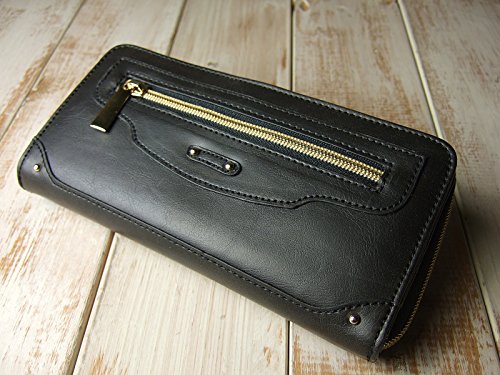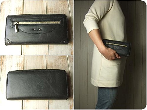 ムラ感が雰囲気のよい微光沢のフェイクレザーを使用したファスナー長財布です。前面カード入れ部分のフラップ開閉はスナップタイプ、お札入れ部分はラウンドファスナーです。お札収納ポケット2ヶ所・カード入れ計16ヶ所・その他お札幅のポケットが4ヶ所・コインなどが入れられるファスナーポケットが1ヶ所となります。 飽きの来ない大人シンプルなフォルムにゴールドのファスナーやさりげなく使用したランス鋲がアクセントになっています。 色違いも出品中です。(完売している場合もあります。)