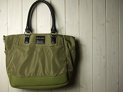 ・軽い高密度ナイロン調生地とボトムにウェットスーツに使用するネオプレーン素材を使用したレガートラルゴ【Legato Largo】の2WAYトートです。メインポケットの開閉はファスナータイプ、前面と背面にマグネット付きのポケットがあり、内側にオープンポケットが2つずつ付いています。両サイドにもオープンポケットがあり、メインポケット内にはファスナーポケットとオープンポケットが付いています。持ち手は約48センチで肩にも掛かり、ショルダーストラップは幅が2.5センチ、長さは70~120センチの間で調節が可能で取り外しもできます。