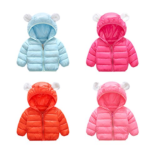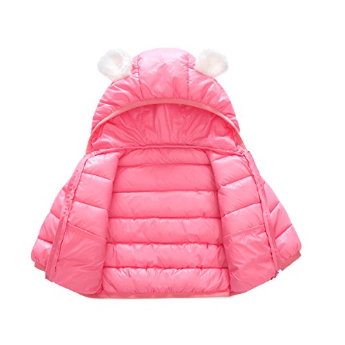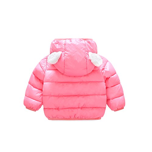 Sanke キッズ ダウンジャケット ベビー 子供服 ダウンコート ダウン 中綿ジャケット 防寒 保温 アウターウエア 女の子 男の子 フード付き 4色 5サイズ 秋冬 ローズレッド110cm
