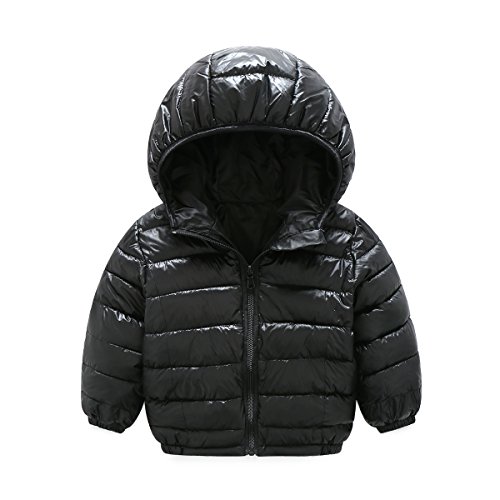 Sanke キッズ ダウンジャケット 子供服 ダウンコート ダウン 中綿ジャケット 防寒 保温 アウターウエア ボーイズ ガールズ フード付き 5色 4サイズ 秋冬ブラック110CM
