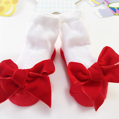 Sanlutoz ベビーソックス 新生児用靴下 女の子 赤ちゃん くつした お祝い 出産 祝い 可愛い プレゼント (12-24 M 対応足裏の長さ 11-13cm(薦め年齢:12-18ヶ月), 红绒)