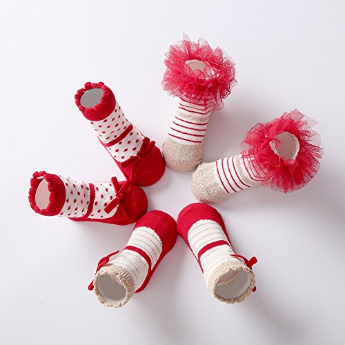 赤ちゃん 女の子 3組 お姫様 靴下 結婚式 可愛い 新生児 お祝い 出産 祝い 可愛い プレゼント 贈り物 (0-12 M 対応足裏の長さ 8-11cm, SKPK049)