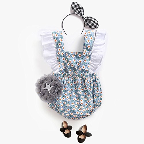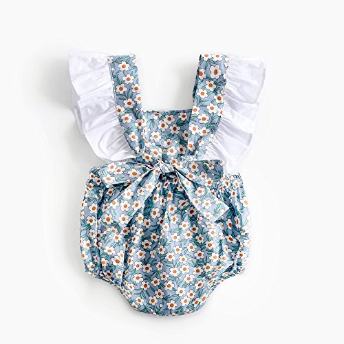 可愛い 子供服 新生児 赤ちゃん 女の子 コットン 花 プリント 可愛い 夏 ボディスーツ ロンパース ジャンプスーツ (2〜3歳, BRS8042)