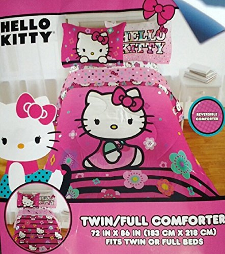 Hello Kitty Floral Hombre Twin/Full Reversible Comforter, 72" x 86",Fits Twin or Full Beds,Reversible Comforter