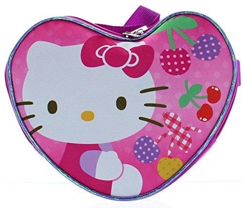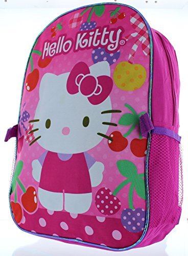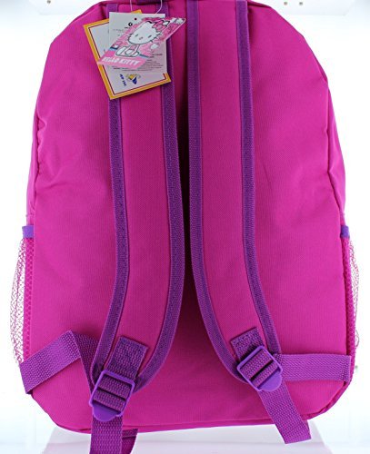 This Hello Kitty backpack can easily carry books, gym clothes, pencils and more! It features a roomy main compartment, the sides feature mesh pockets that are great for storing a calculator, note cards or even a water bottle. The lunch bag is big enough to store lunch and snack for the day and conveniently attaches to the backpack thanks to its velcro straps. This set can be hung up when not in use by the webbed locker loop. This set is designed in Pink durable fabric with accents of Purple with fun images of the awesome Hello Kitty! The perfect back to school choice for any Hello Kitty fan!