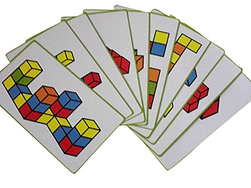 3cmの立方体のカラフルな積み木が50個と、組み立ての参考になるカードがセットになっています。並べたり、積み上げたりと遊び方は様々。
