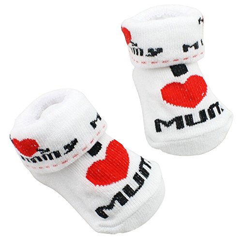 キュートベビーコットンソックスホワイトI Love Mum / Dad 0 – 6ヶ月のBoys Girls ( 2ペア)