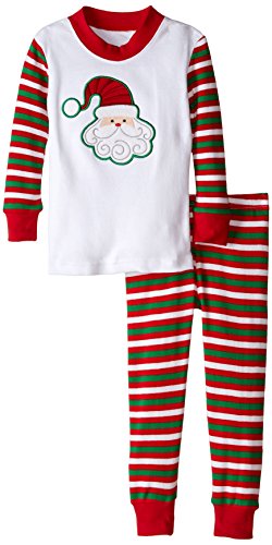 素敵な2ピースのパジャマの子供はクリスマスの晩にファッショナブルな外見。のパジャマトップはサンタの顔のアップリケと両方の要素が設定されていることをお祝いの色はレッド、ホワイト、グリーン。この愛らしい休日のパジャマはあなたのスペシャル・ワン。