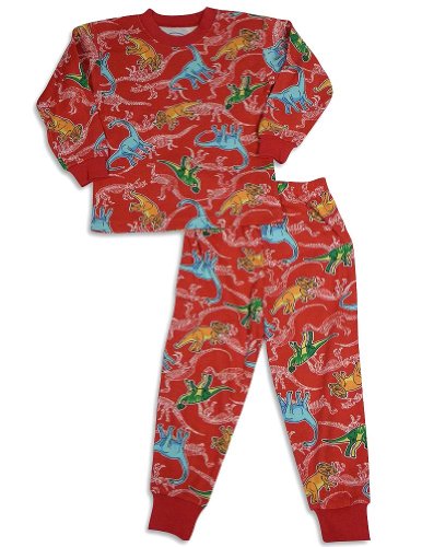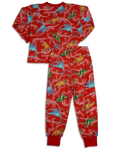 SARAの印刷 – 幼児男の子恐竜長袖パジャマ,レッド,リブ編みされたネック、袖口の手首、腰周りゴム入りパンツ、リブ袖足首、耐炎、60 %コットン40 % Modacrylic , No。25254