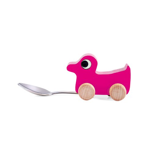 やかましい自宅がありましたらを使用したMealtime楽しい遊び心のあるピンクDuckスプーンに、子は、きっとされるデザイナー: Donkey Creative Lab素材:メタル、木製寸法: 5.5 "