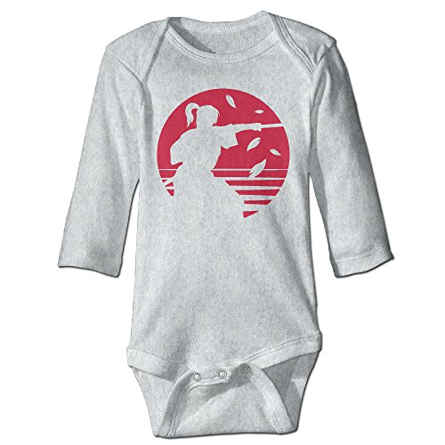 Sasa85 日本 川 夕日 剣道 忍者 浪人 アイコン 長袖ボディースーツ ベビー服 トップス プレゼント 暖かい グレー 6 M