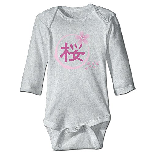 Sasa85 桜 月 花吹雪 花落ちる イラスト 長袖ボディースーツ ベビー服 連帯服 赤ちゃん フィットオール グレー 6 M