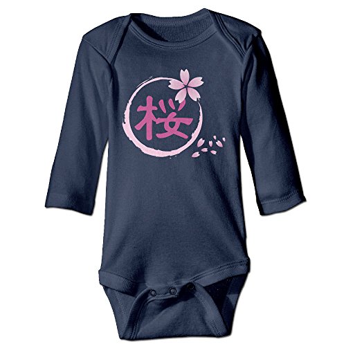 Sasa85 桜 月 花吹雪 花落ちる イラスト 長袖ボディースーツ ベビー服 トップス ギフト 男女兼用 ライトブルー 18 Months