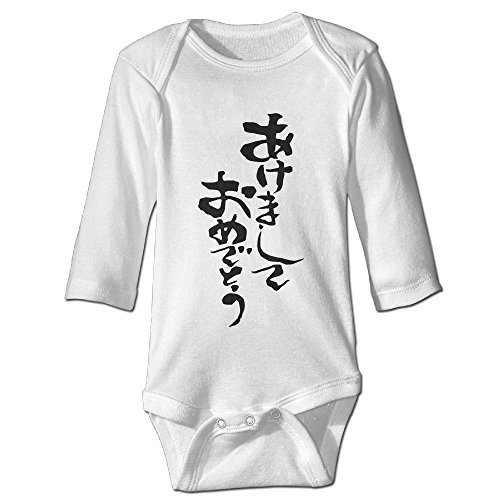 Sasa85 あけましておめでとう 正月 年賀状 ひらがな プリント 長袖ボディースーツ ベビー服 連帯服 幼児 かわいい ホワイト 18 Months
