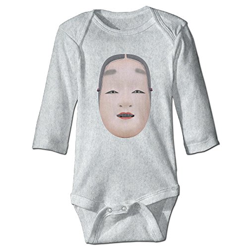 Sasa85 能 日本 伝統芸能 能楽 無形文化遺産 仮面 イラスト 長袖ボディースーツ ベビー服 ロンパース 出産祝い 柔らかい グレー 24 Months