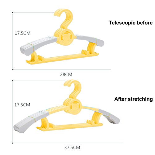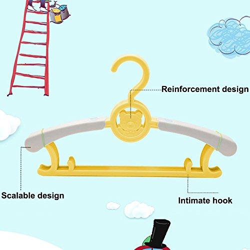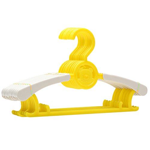 Sasairy ハンガー 子供用 0-18歳に対応 調整可能 10本セット ベビーハンガー 滑り止め 軽い 新生児から大人まで 多機能 伸縮できる インテリア 出産祝い プレゼント イェロー