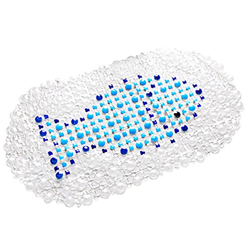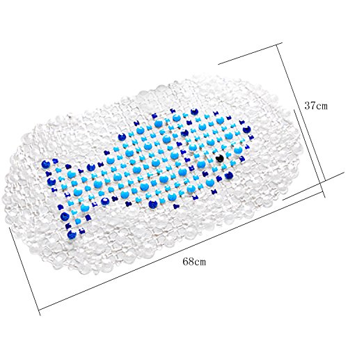 Sasairy バスマット お風呂マット 滑り止め 透明 浴室用 吸盤付き ソフト 防カビ 丸洗い 転倒防止 浴室用 入浴マット 絵柄 バスルームマット ブルー