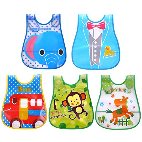 Sasairy 食事スタイ ベビー 5点セット さらっと油が落ちる 食事用エプロン ポケット付き 防水可愛いデザイン ビブ 男の子/女の子 マッジクテープ式 離乳食 保育園にも