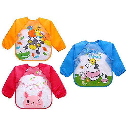 Sasairy ベビー お食事エプロン 3枚組 防水エプロン 男の子/女の子 長袖 食事用スタイ 幼稚園 2~5歳に適用 ベビーグッズ 前掛け 洗い替え よだれかけ