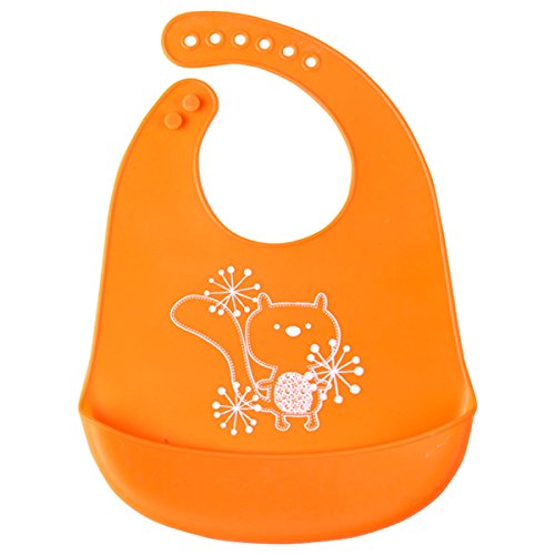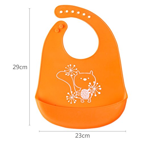 Sasairy 防水スタイ お食事用 ベビー シリコン ビフ 大きいポケット付き ソフト エプロン 赤ちゃん 食べこぼし 5段階 男の子/女の子 食事用グッズ サイズ調整可能 持ち運び 出産祝い 離乳期用 プレゼント オレンジ
