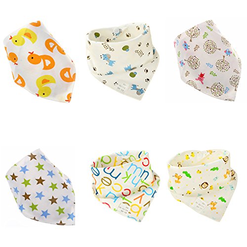 Sasairy よだれかけ ベビー 6枚入り コットン糸 唾液タオル 幼児 三角形 両面のスナップビブ 調整可能 ソフト よだれカバー 首輪用 可愛い ビブ 出産のお祝いギフト