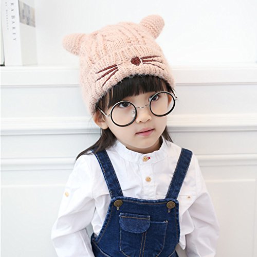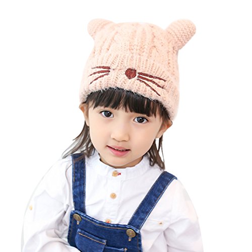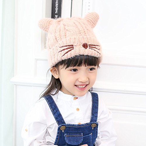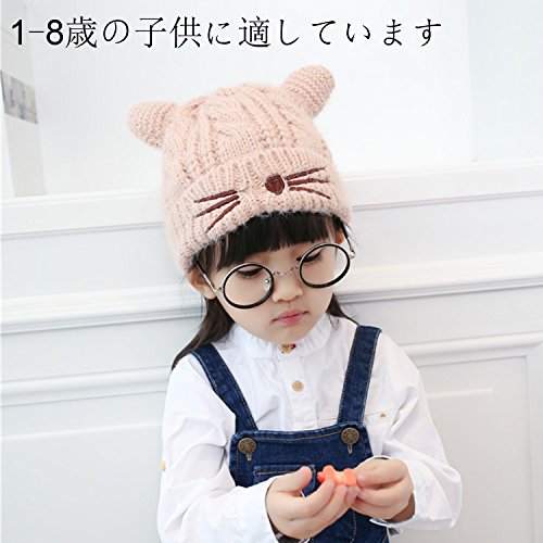 Sasairy ニット帽子 キッズ 耳付き ニットキャップ 猫耳 可愛い 帽子 男女兼用 秋冬 プレゼント キャップ 柔らかい 通園 通学 1-8歳に対応 ピンク