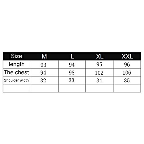 - ノースリーブ:M着丈93cm/バスト94cm/肩幅32cm L着丈94cm/バスト98cm/肩幅33cm XL着丈95cm/バスト102cm/肩幅34cm XXL着丈96cm/バスト106cm/肩幅35cm