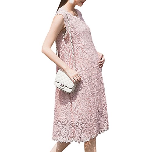 Sasairy マタニティ ワンピース 着痩せドレス ノースリーブ フロントギャザー 大きいサイズ 小さいサイズ 裏地付き 産前産後 マタニティ フォーマル ピンク 上品