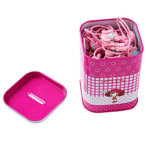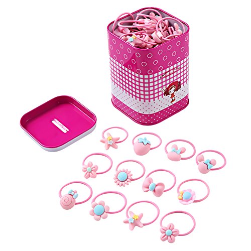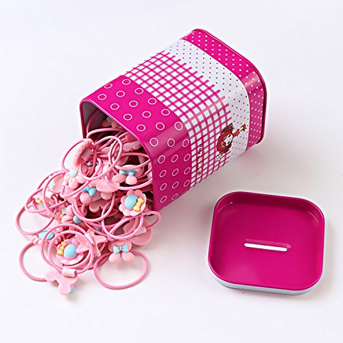Sasairy 40本 子供用カラフルヘアゴム 超弾性 髪ゴム 漫画 柔らかい 超可愛いヘアリング 赤ちゃん 女の子用ゴムバンド ヘアアクセサリー ヘアバンド 幼稚園 小学生 通園 通学 10種類 アイアンボックス付き ピンク