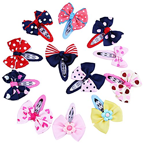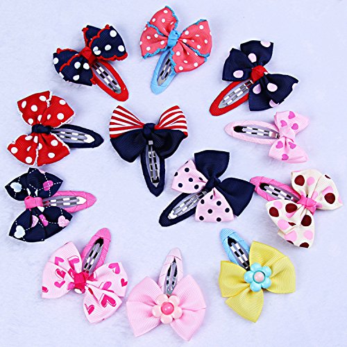 Sasairy 12個入り 子供用パッチンどめ ボウタイ 混合色 髪クリップ 超可愛い 赤ちゃん 蝶結びヘアグリップ ヘアクリップ 女の子 ベビー キッズヘアアクセサリー 幼稚園 小学生 誕生日 贈り物