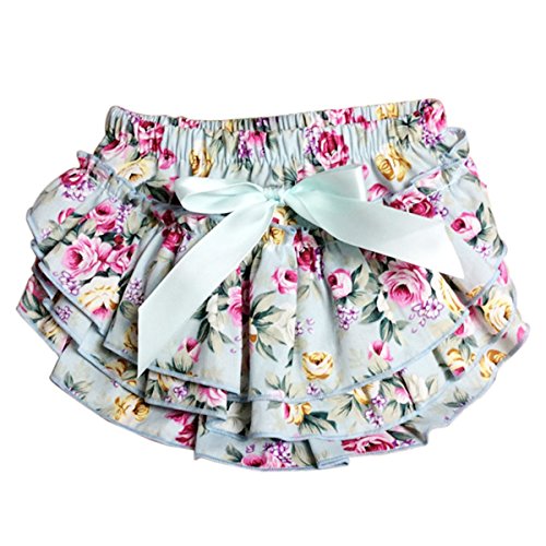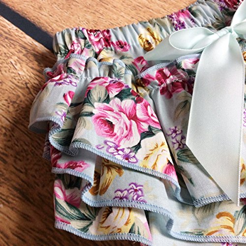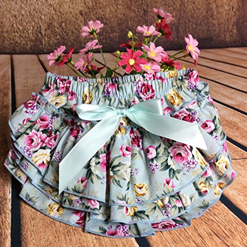 Sasairy ベビー ブルマ ぱんつ ベビー ブルマ お花ヘアバンドセット かわいい 夏 秋 綿 3段フリフリブルマ 見せパンツ ブルマ オーバーパンツ 子供 トレーニングパンツ プリント×ブル―