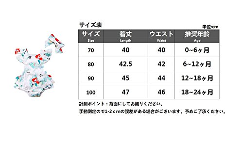 (ササレルン) Sasarelun 子供服 ロンパース カバーオール 人魚柄 肩フリル ストラップ調節可 スナップボタン付き ヘッドバンド付き 女の子 可愛い 春夏 ホワイト 70/0~6ヶ月