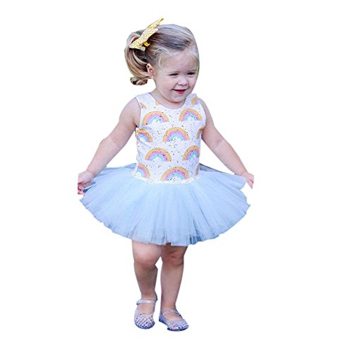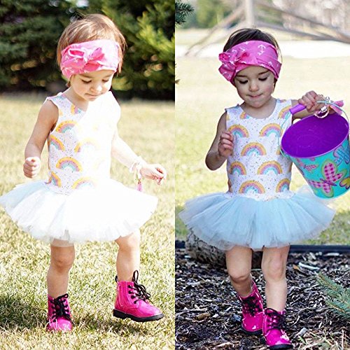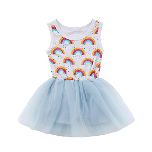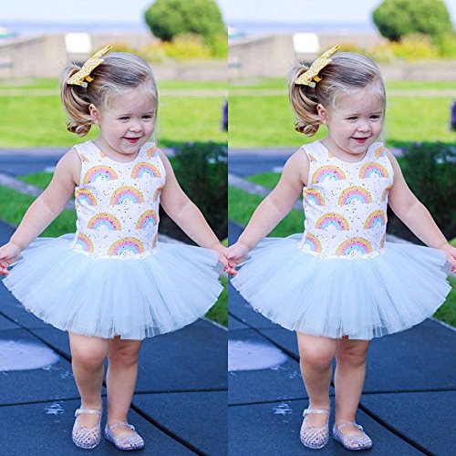 (ササレルン) Sasarelun 子供服 女の子 スカート ドレス ワンピース 虹柄 無袖 出産祝い 可愛い ホワイト 90/2ー3歳