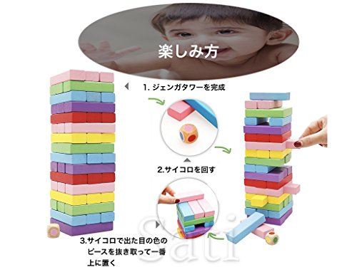 6色木製カラフルジェンガ(48ピース)子供〜大人まで楽しめる知育玩具 積み木・ドミノ・ブロックとしても遊べるおもちゃ アンバランス