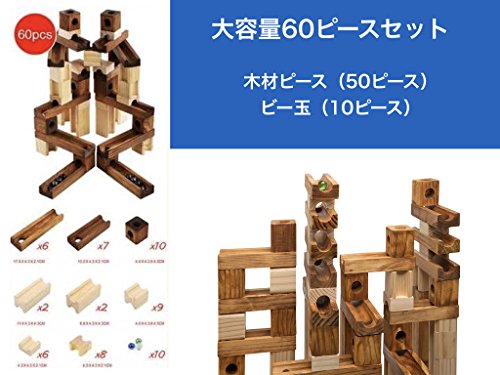 【ビー玉積み木転がしセット】60ピース スタンダード 木製知育玩具【保証書付き】