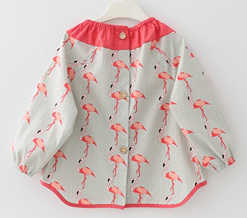 可愛い 幼児 長袖 防水 食事用エプロン スモック 前掛け (110(110-120cm), フラミンゴ)
