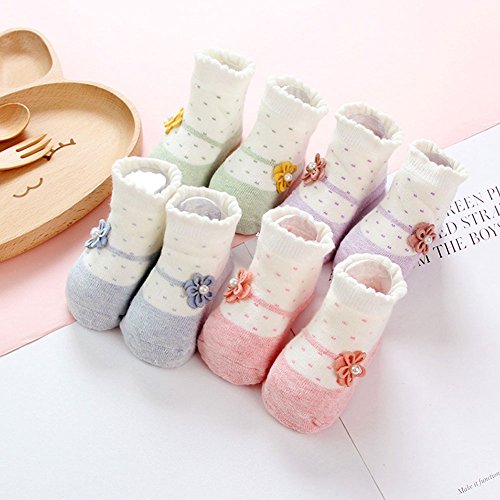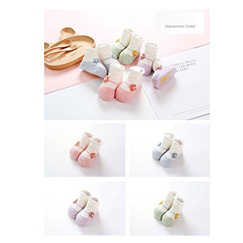 Sawors ベビー 赤ちゃん 乳幼児 ソックス 靴下 柔らかい 保温ソックス 滑り止め 花 マカロン色 キャラクター ルームシューズ ファーストシューズ4足セット 0-1歳