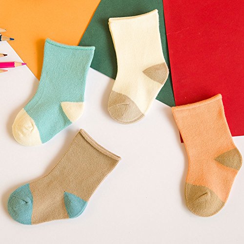 Sawors 子供 ベビー ソックス 4足セット かわいい靴下 コットン 柔らかい 保温ソックス 無地 4色 0-1歳 赤ちゃん 乳幼児 男の子 女の子用 (L:1歳~3歳)