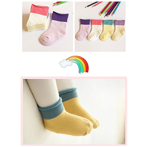 Sawors 子供 ベビー ソックス 4足セット かわいい靴下 コットン 柔らかい 保温ソックス 無地 4色 0-1歳 赤ちゃん 乳幼児 男の子 女の子用 (L:1歳~3歳)