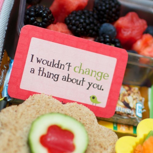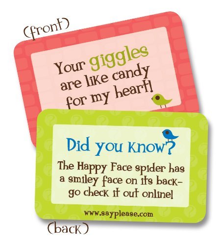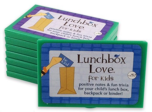 Lunchbox Love? - positive notes and fun trivia or jokes for your child's lunchbox, backpack, binder, or pillow. Busy parents and caregivers will love this easy yet meaningful way to share positive feelings and values with their children. Fun trivia on the back entertains. Positive words on the front enlighten. Each volume contains 12 cards--10 with different phrases and fun facts or jokes and 2 blank fronts so you can add a personal message. Credit-card size plastic case fits easily into a pocket, purse or on a countertop, making it easy to grab and give.
