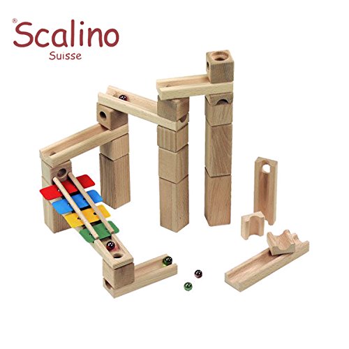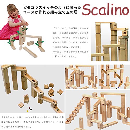 スイス製のピタゴラスイッチのように凝ったコースが作れる組み立て玉の塔「Scalino(スカリーノ)」シリーズ。 バラエティに富んだ玉の塔が作れる補充セットです。 カラフルな鉄琴の上をビー玉が転がると楽しい音がする「スカリーノ 鉄琴セット」。 スカリーノのベーシックセットと組み合わせて遊んでください。