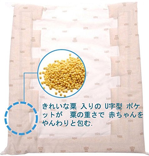 - きれいな粟 入りの U字型 ポケットが 粟の重さで 赤ちゃんを やんわりと包む