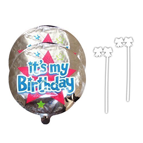 Pack of 2 self inflating balloons -Having Happy Birthday message printed on them;Attractive star shaped;Very user friendly - Simply press the center pouch, no need to blow them;On inflating balloons make hissing sound;Comes with clip on stick and is ideal for birthday parties