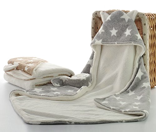 Schlegel おくるみ クマ ベビー 新生児 フリース 生地 あったか ふわふわ ブランケット 星柄 出産祝い 秋 冬 (星柄グレー)