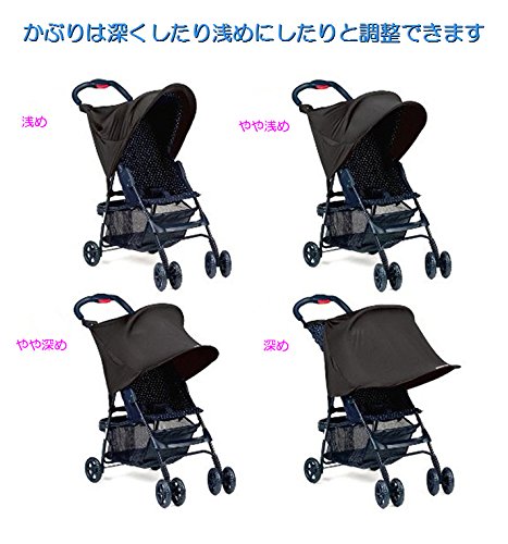 - 日差しの差し込む角度に合わせて被りの調整ができます。通気性もよく、ベビーカーの中が涼しく快適に
