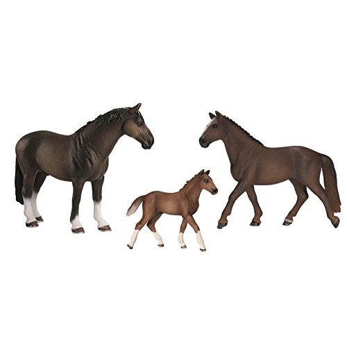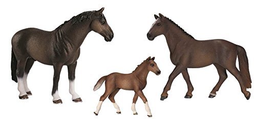 The 'Schleich Hanoverian horse family set' includes a Hanoverian mare, foal and stallion. With the whole family, this starts a whole world of play!