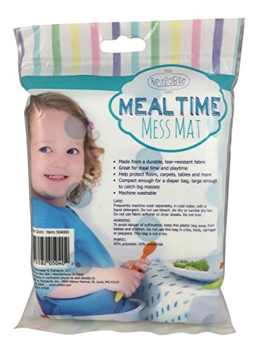 Made from durable, tear-resistant fabric you can use again and again;Machine wash and dry - no extra work for you;Compact size (folds to 6 by 5 by 1/2 inches) makes it easy to store and to throw in a diaper bag or knapsack;Great for meal time and play time;Helps protect floors, carpets, and tables - never worry about messes again