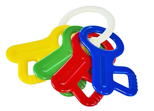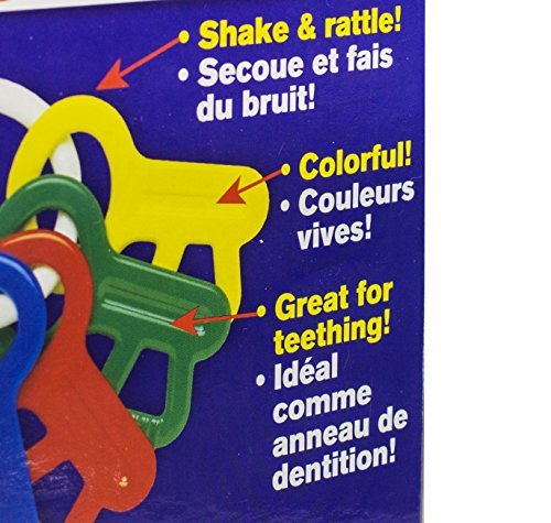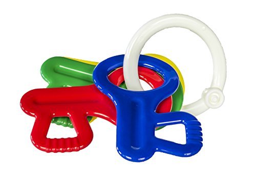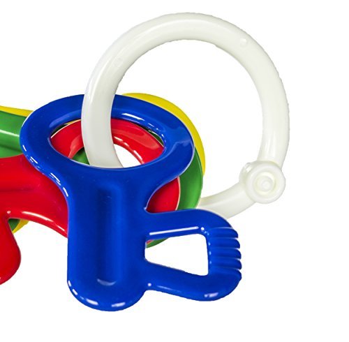 Stimulate their senses with these adorable keys! Their smooth edges make them perfect for teething and their contrasting primary colors and pleasant rattle will keep any tiny tot curiously engaged. Helps promote hand-eye coordination, manual dexterity and visual acuity.