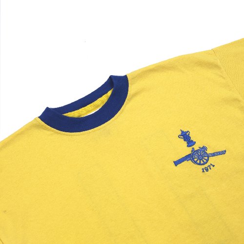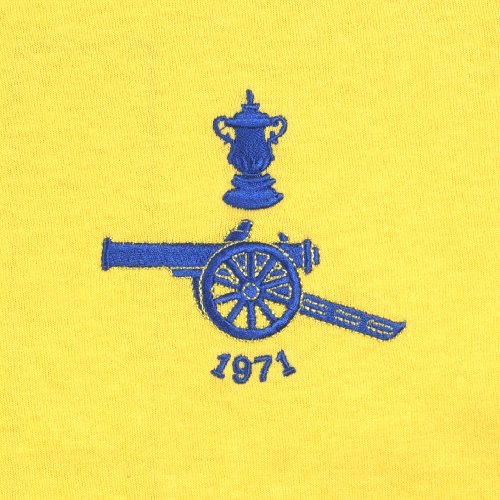 Official Retro Arsenal 1971 Fa Cup Finals No 11 Football Shirt. A short sleeve shirt crew neck shirt with an embroidered Arsenal Football club badge to the front and a no 11 sewn to the back of the shirt. An official licensed product.